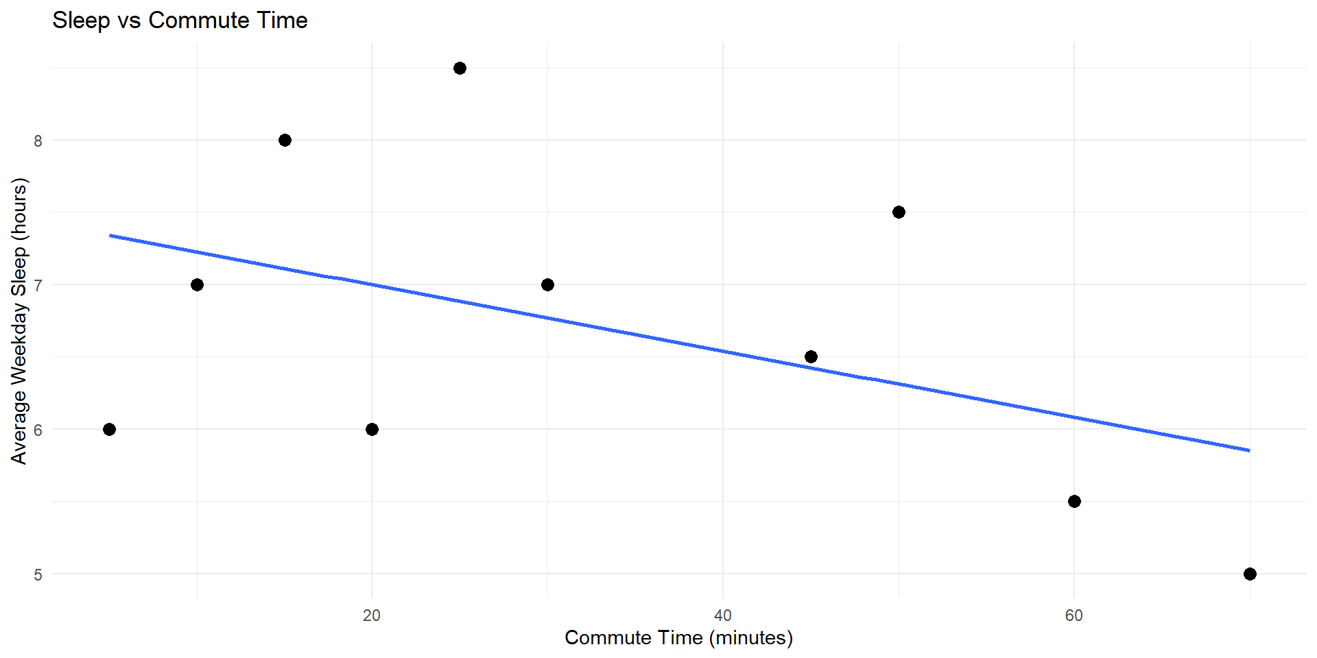graph1 <- ggplot(sleep_data, aes(x = commute_min, y = sleep_hours)) +