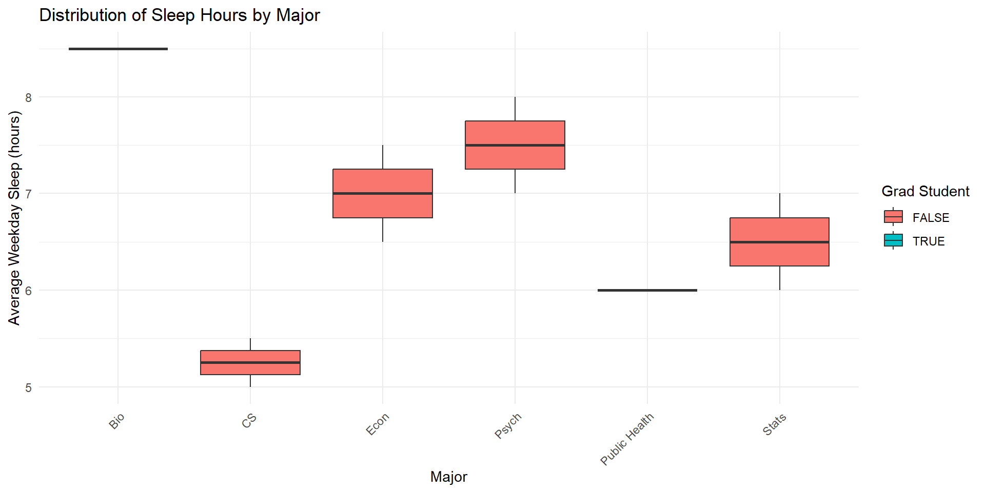 graph4 <- ggplot(sleep_data, aes(x = major, y = sleep_hours, fill = grad_student)) +