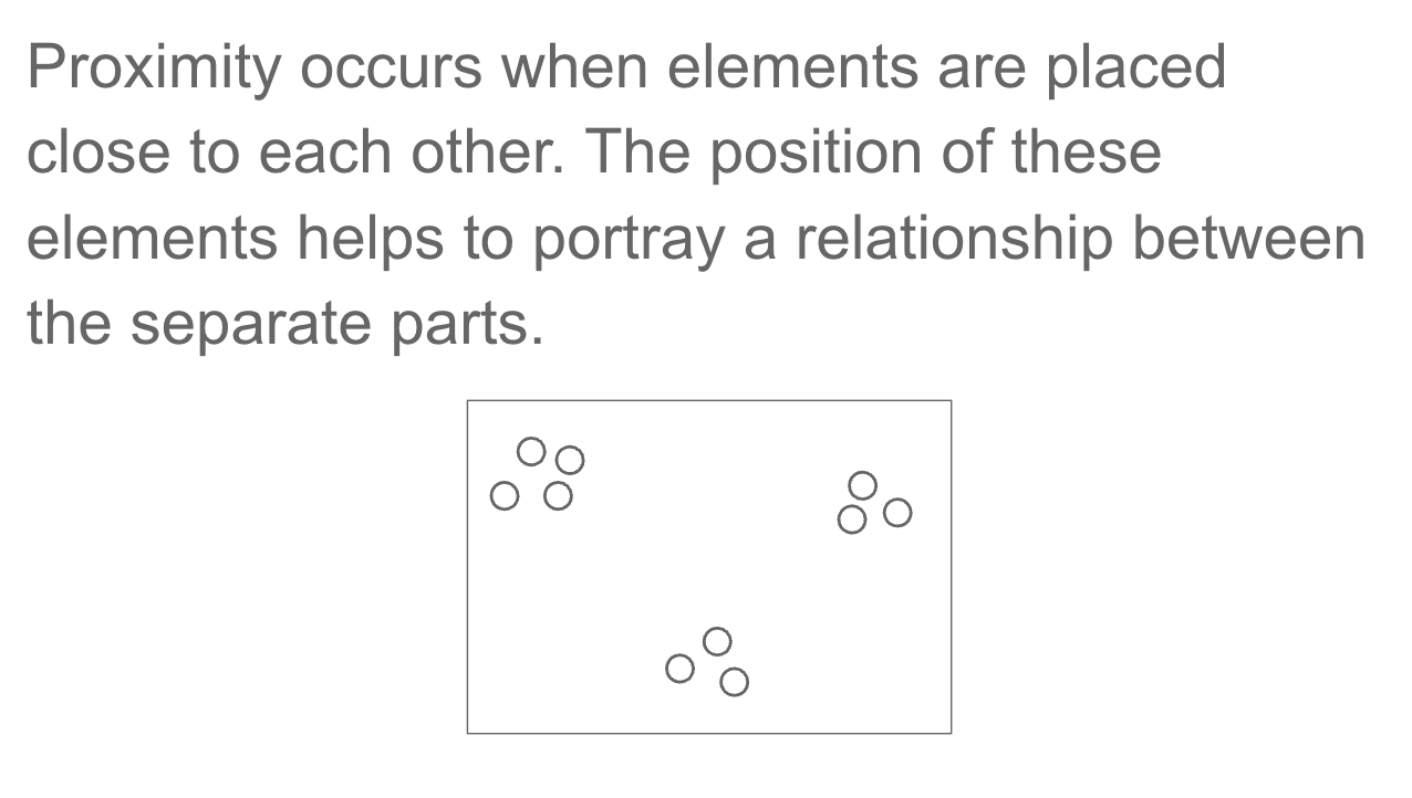 In dataviz: Grouped bar charts use proximity to show that bars within a group belong together (same time period, same category). Spacing between groups signals separation.